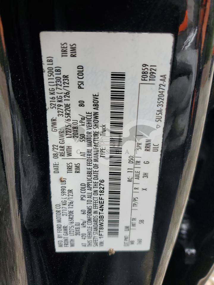 • VIN: 1FT8W3BT4NEF18276