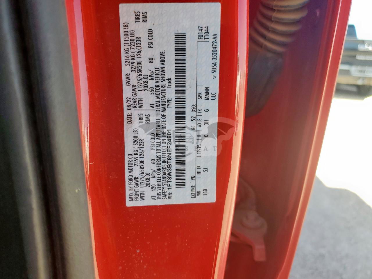 • VIN: 1FT8W3BT8NEF24601