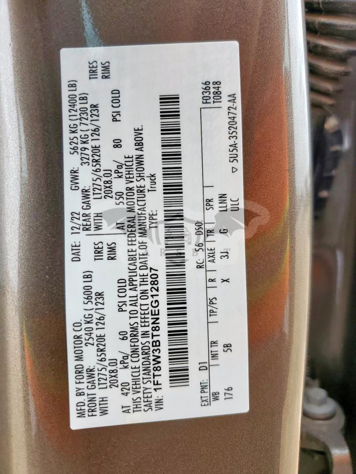 • VIN: 1FT8W3BT8NEG12807