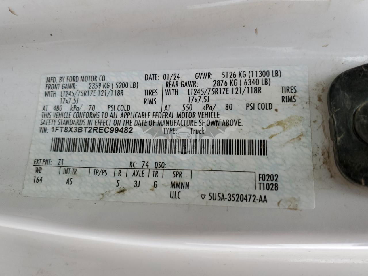 • VIN: 1FT8X3BT2REC99482