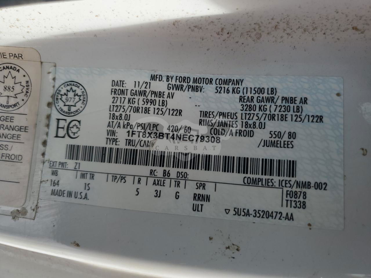 • VIN: 1FT8X3BT4NEC79308