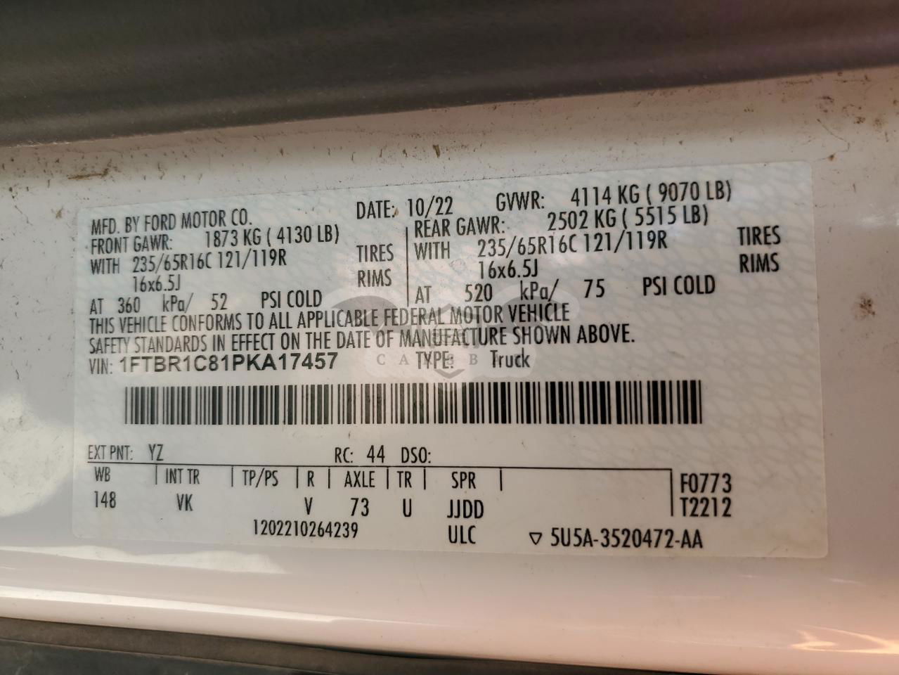 • VIN: 1FTBR1C81PKA17457