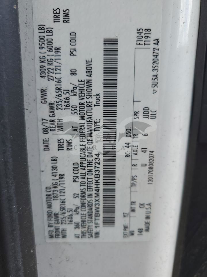 • VIN: 1FTBW3XM4HKB37234