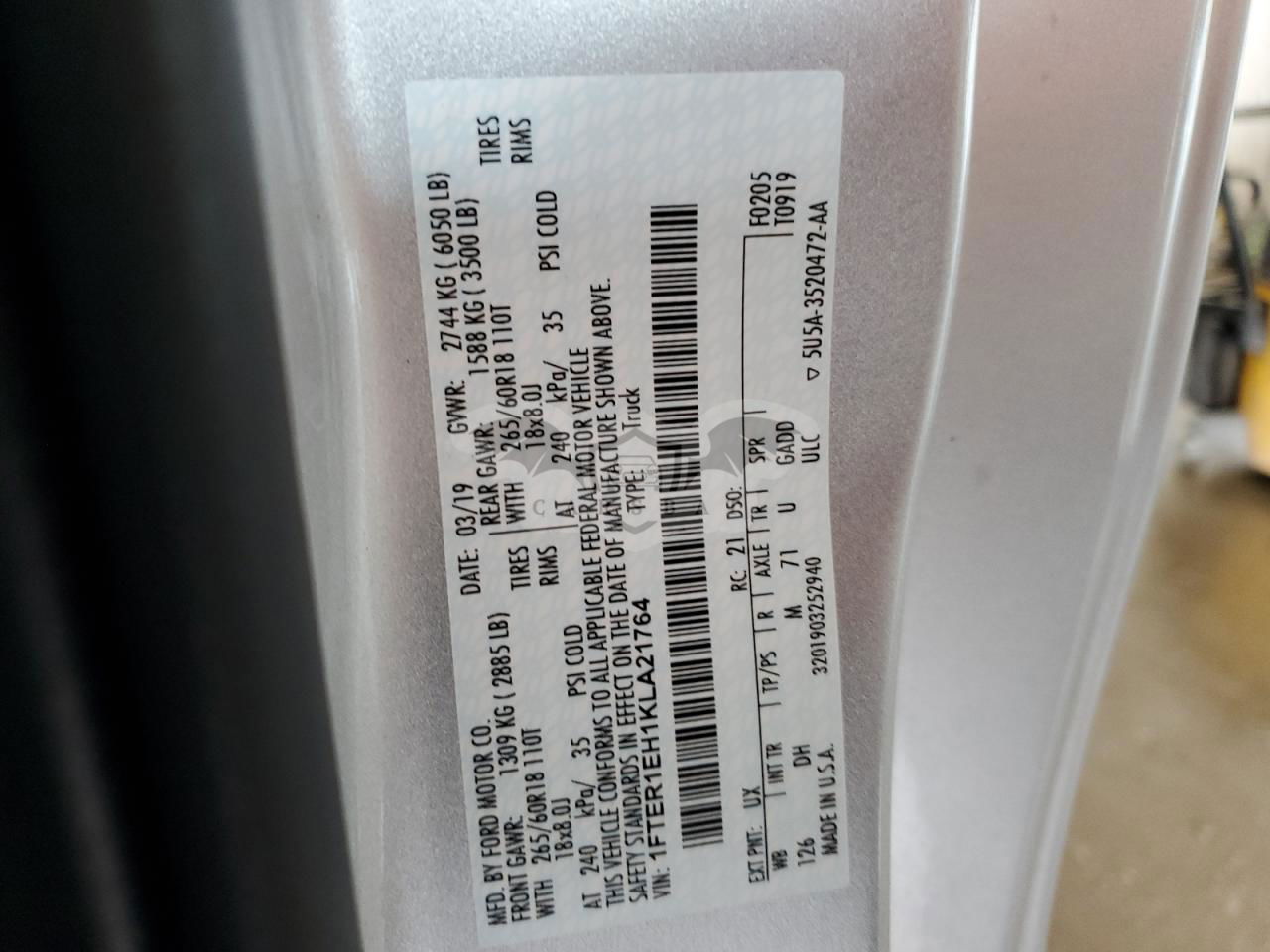 • VIN: 1FTER1EH1KLA21764