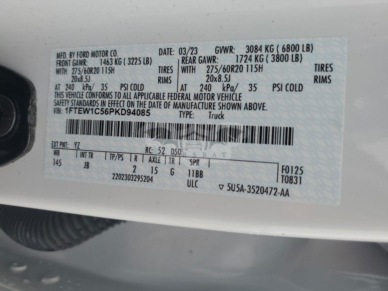 • VIN: 1FTEW1C56PKD94085