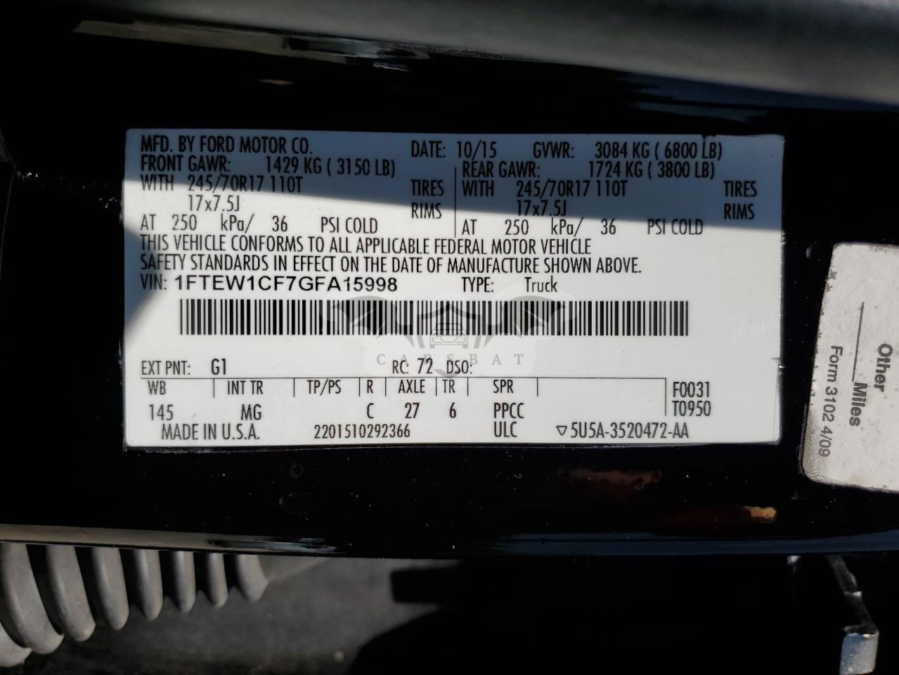 • VIN: 1FTEW1CF7GFA15998