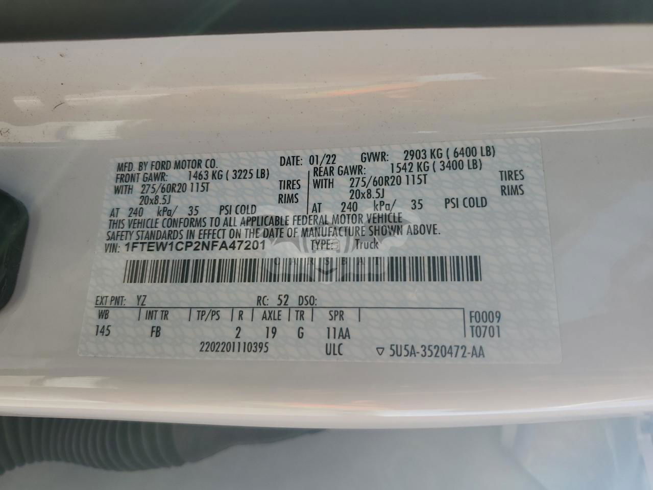 • VIN: 1FTEW1CP2NFA47201