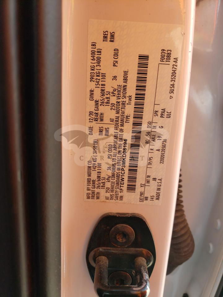 • VIN: 1FTEW1CP3MKD08194