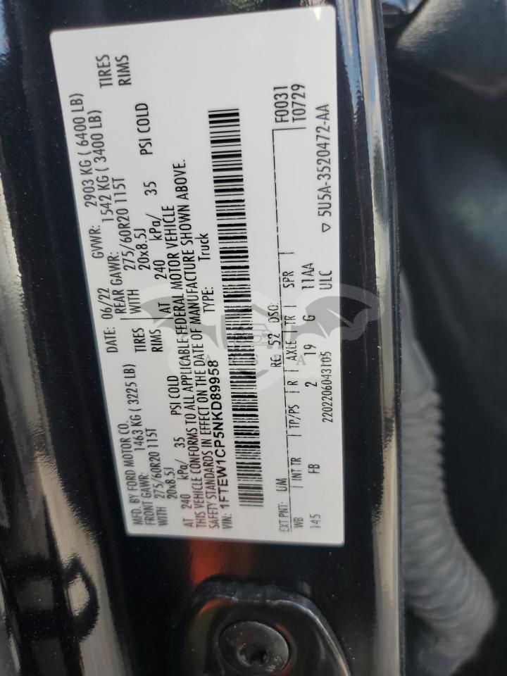 • VIN: 1FTEW1CP5NKD89958