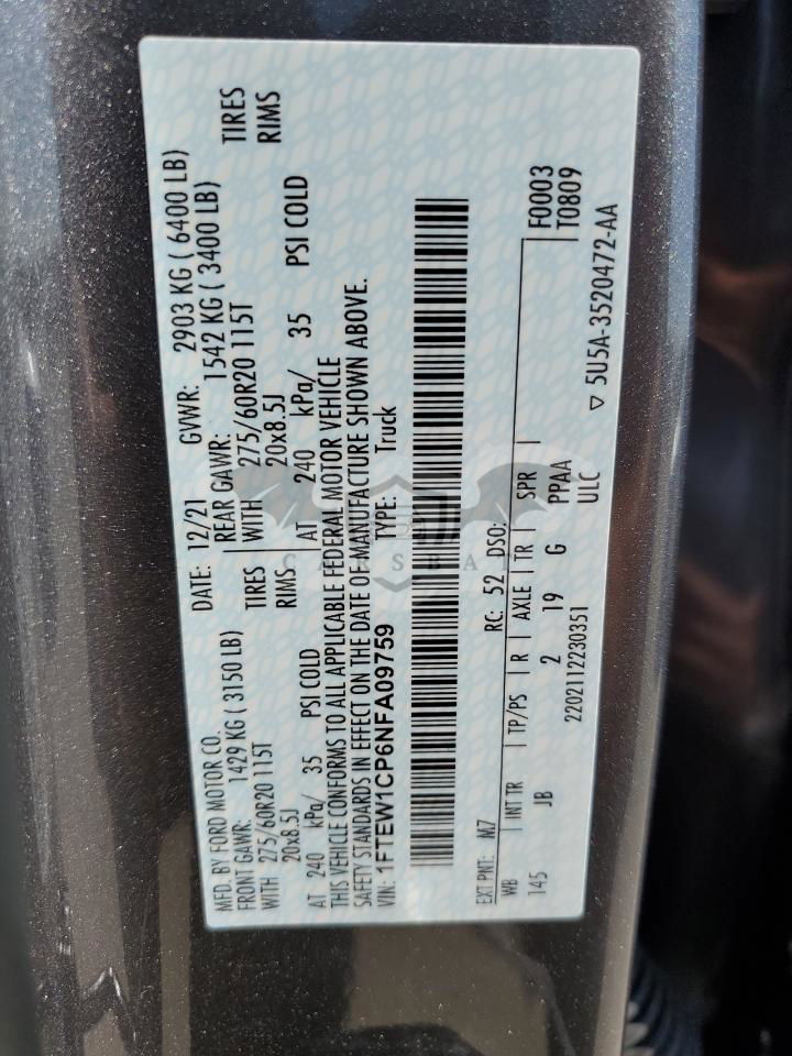 • VIN: 1FTEW1CP6NFA09759