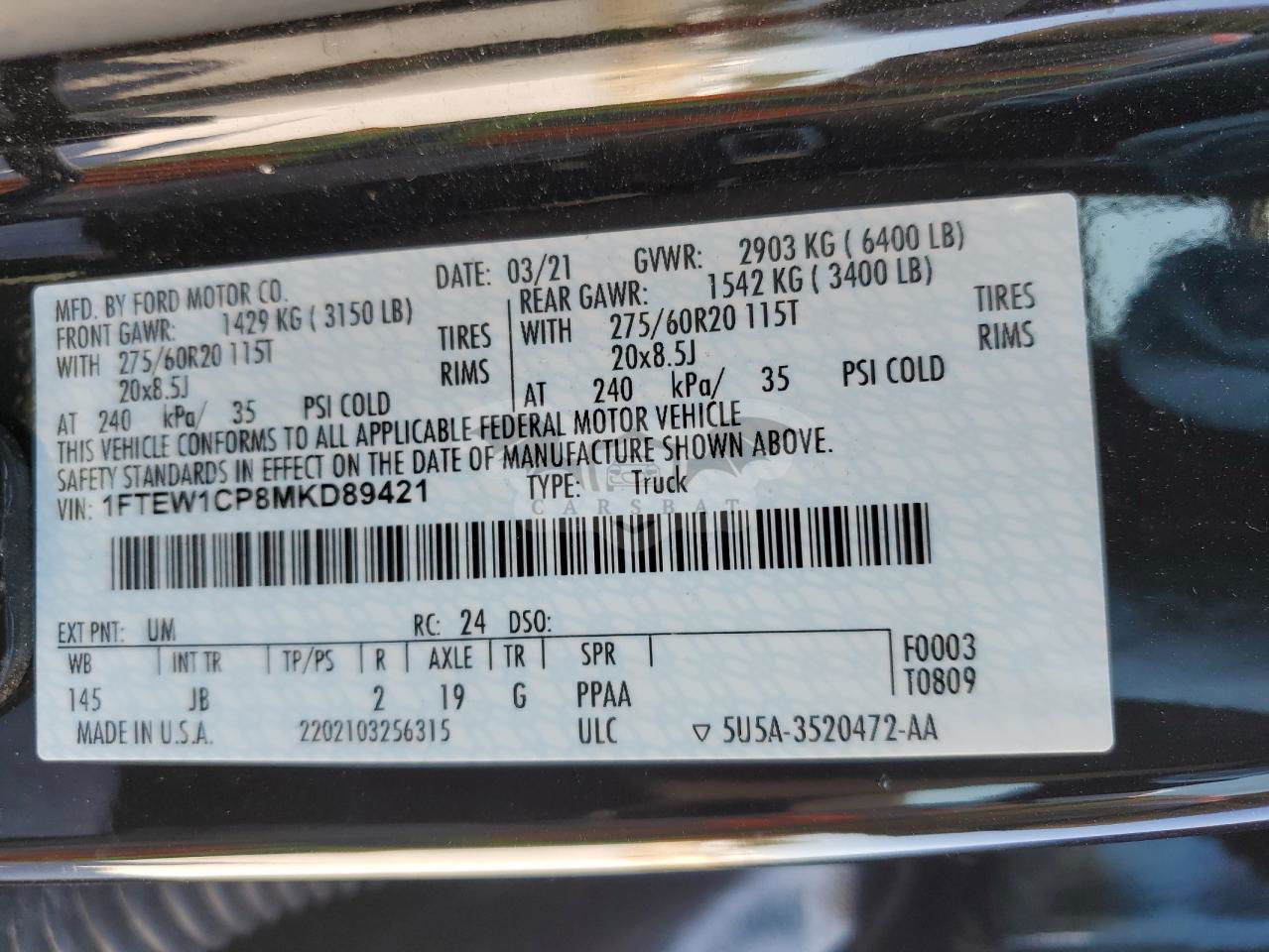 • VIN: 1FTEW1CP8MKD89421