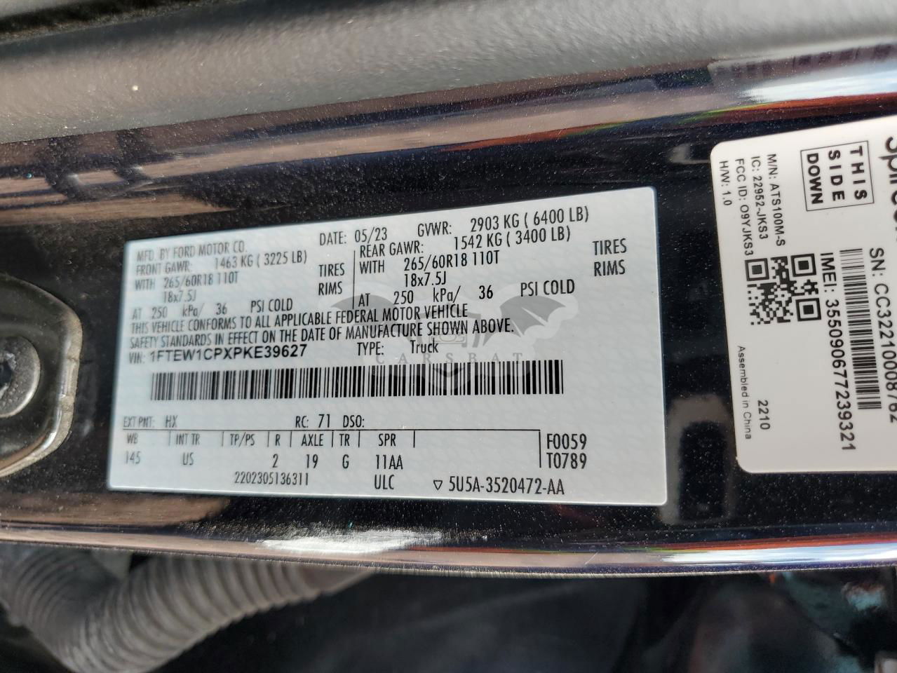 • VIN: 1FTEW1CPXPKE39627