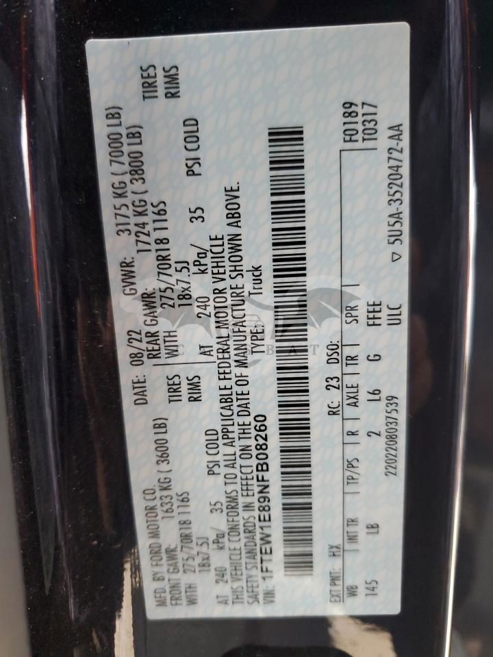 • VIN: 1FTEW1E89NFB08260