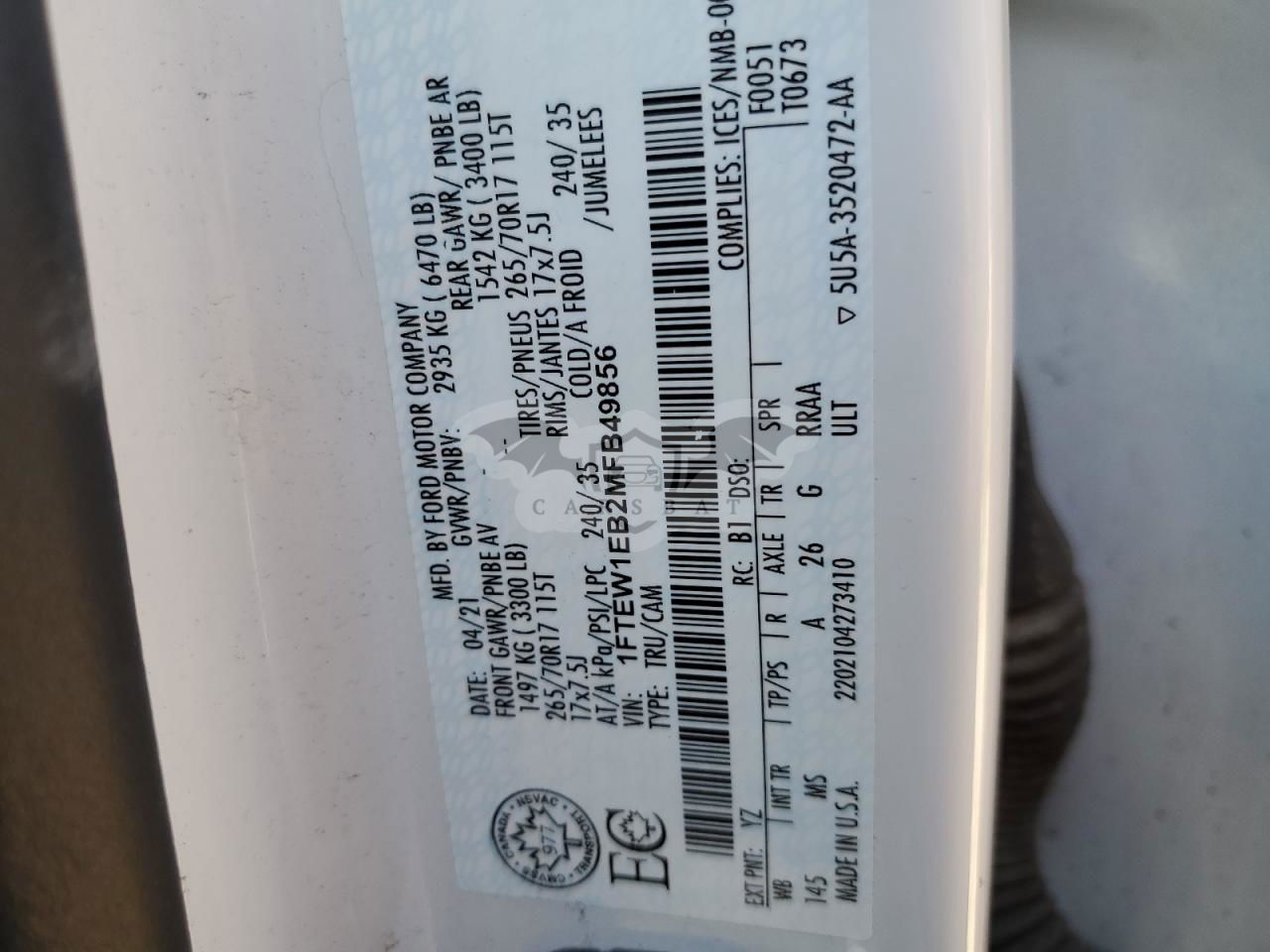 • VIN: 1FTEW1EB2MFB49856