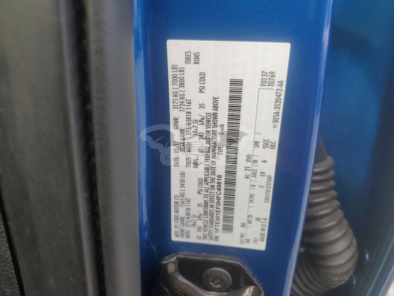 • VIN: 1FTEW1EF0HFC49818