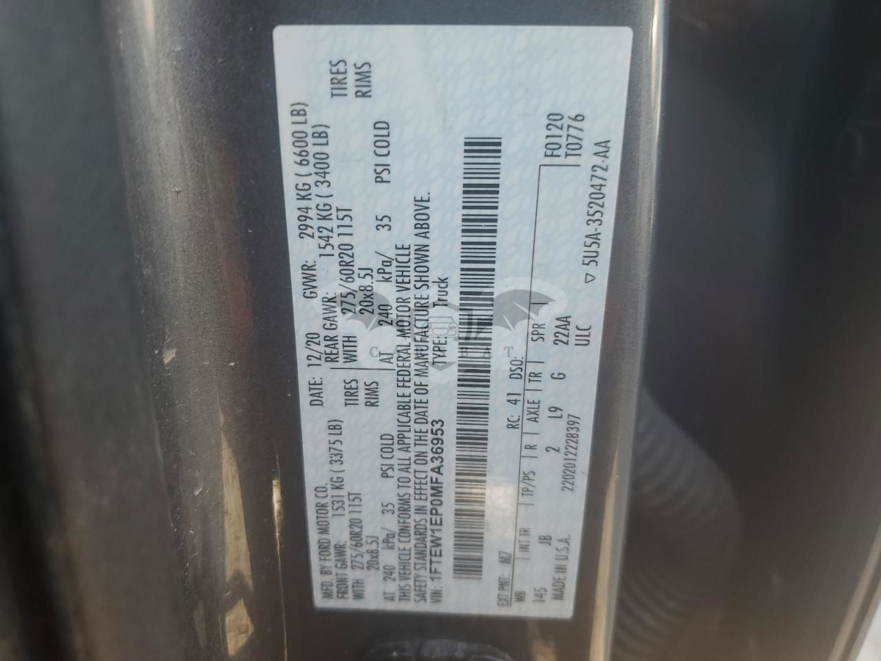 • VIN: 1FTEW1EP0MFA36953