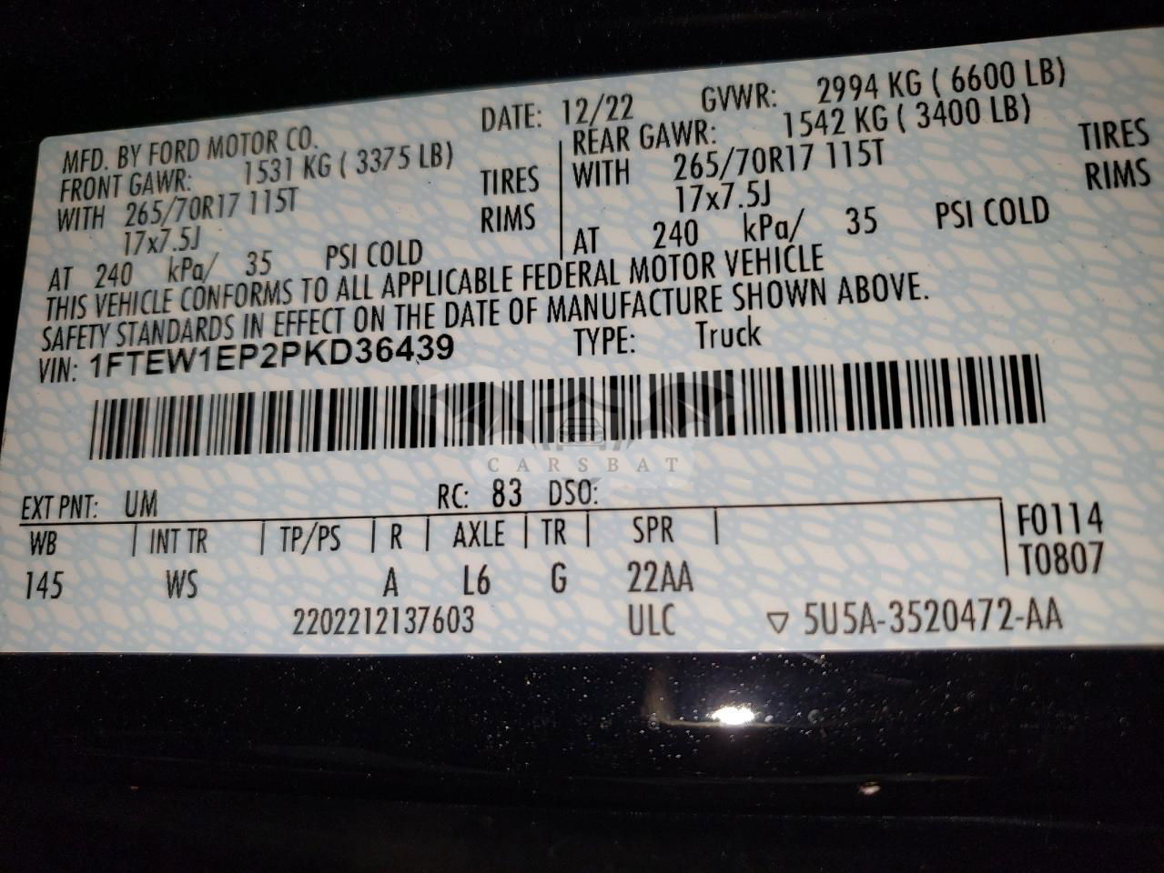 • VIN: 1FTEW1EP2PKD36439