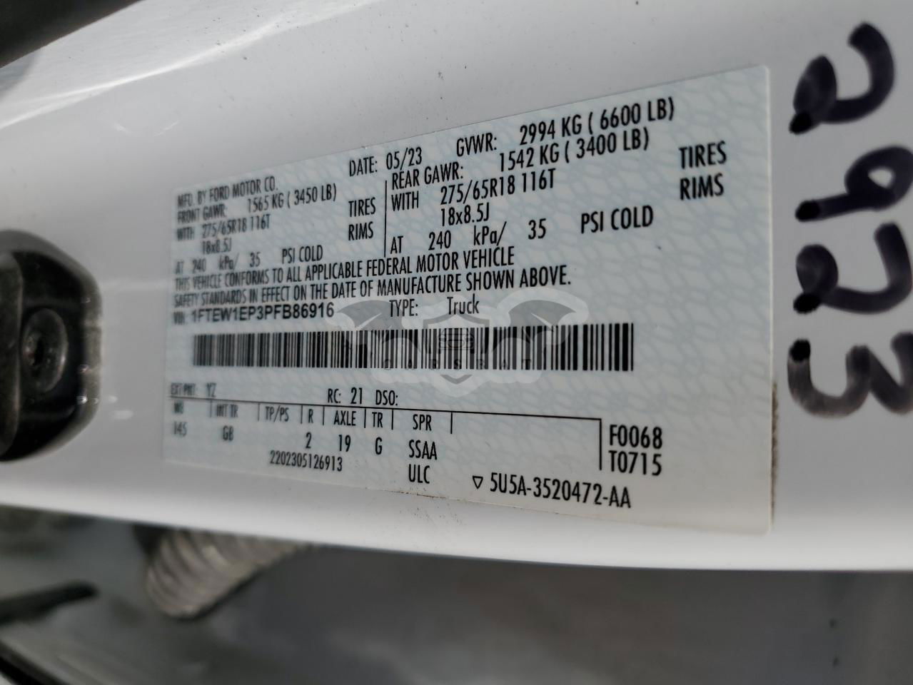 • VIN: 1FTEW1EP3PFB86916