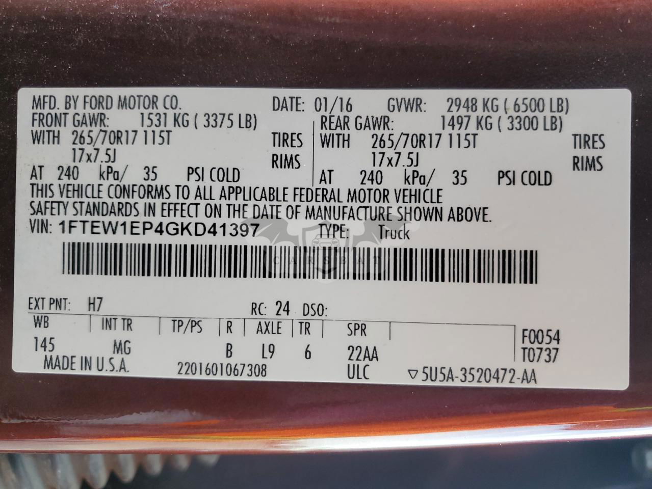 • VIN: 1FTEW1EP4GKD41397