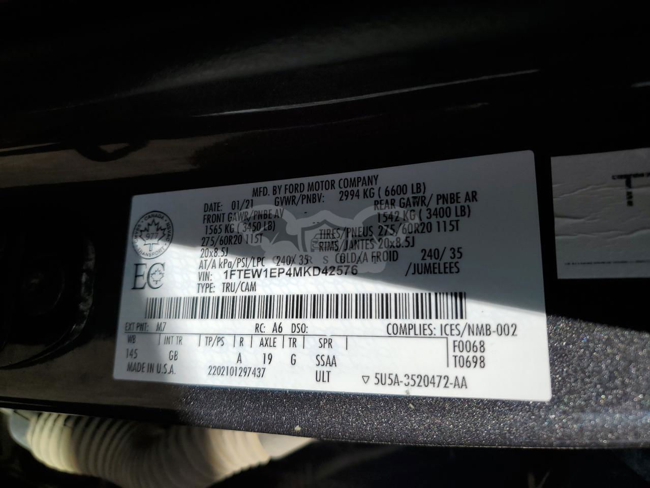 • VIN: 1FTEW1EP4MKD42576