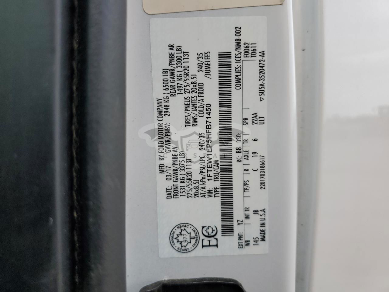 • VIN: 1FTEW1EP5HFB71450