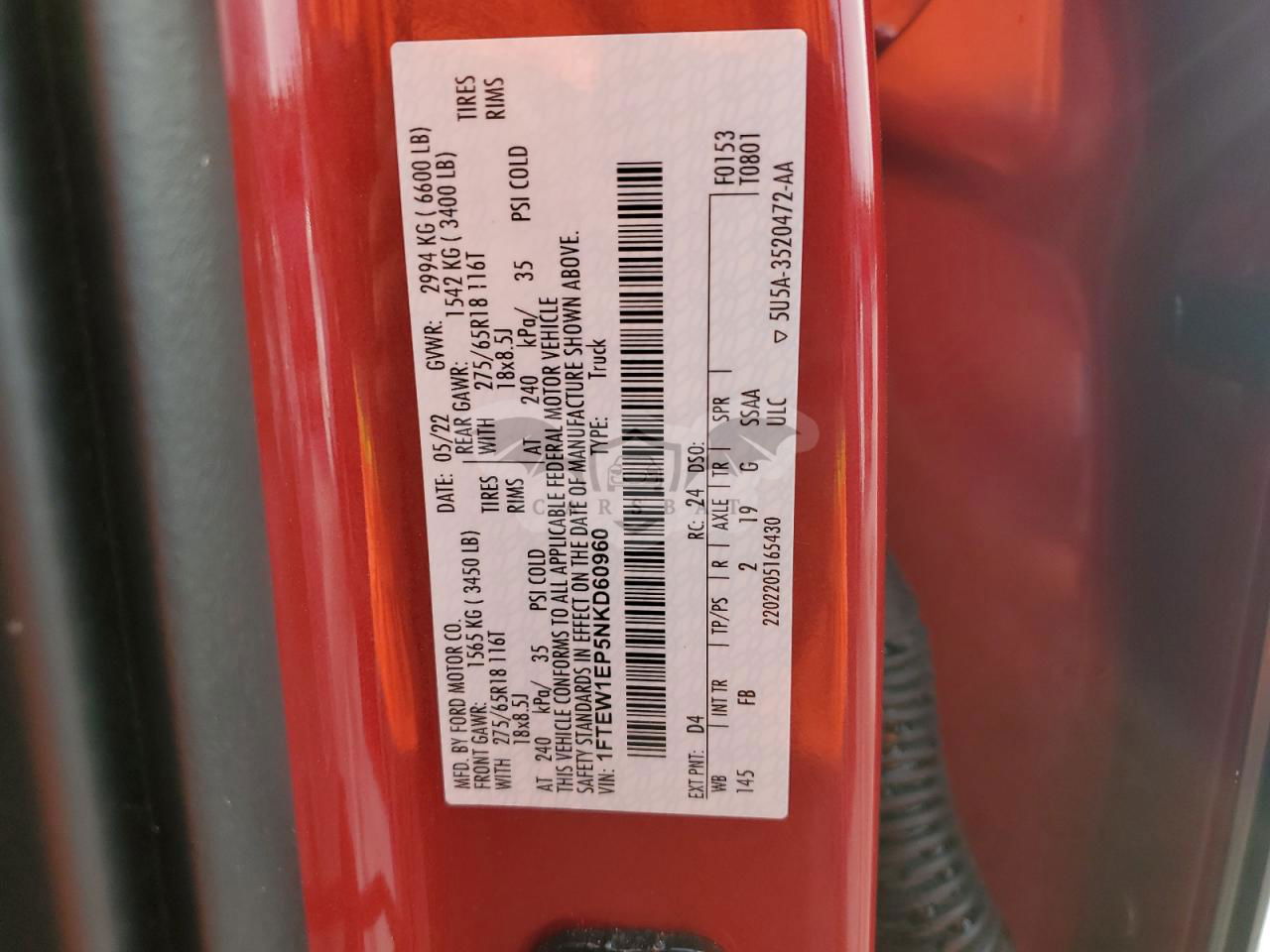 • VIN: 1FTEW1EP5NKD60960