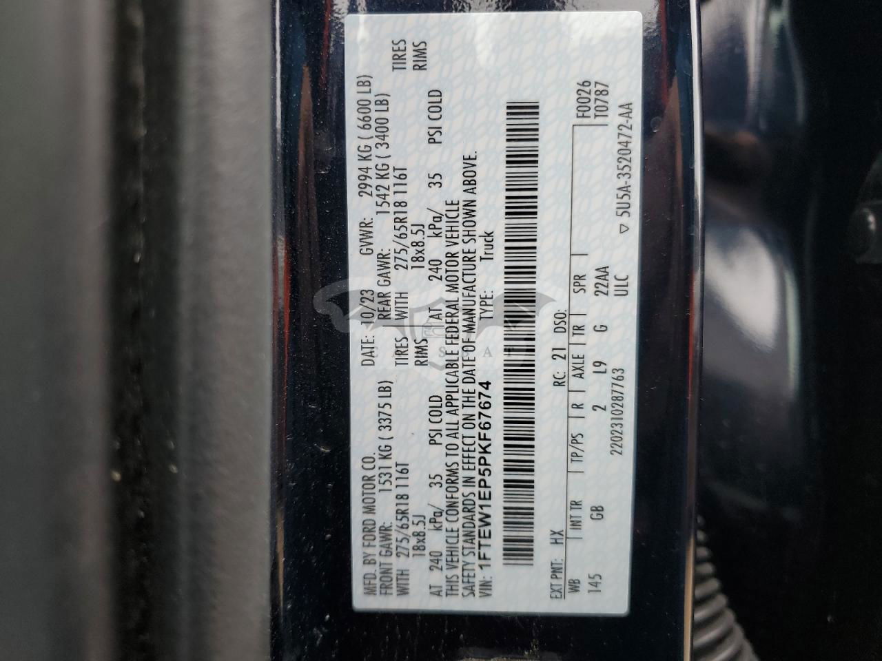 • VIN: 1FTEW1EP5PKF67674
