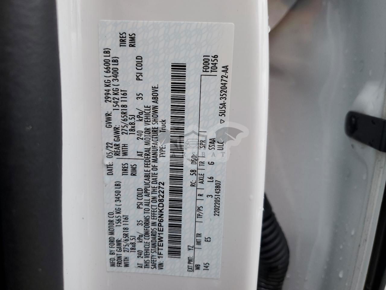 • VIN: 1FTEW1EP6NKD82272