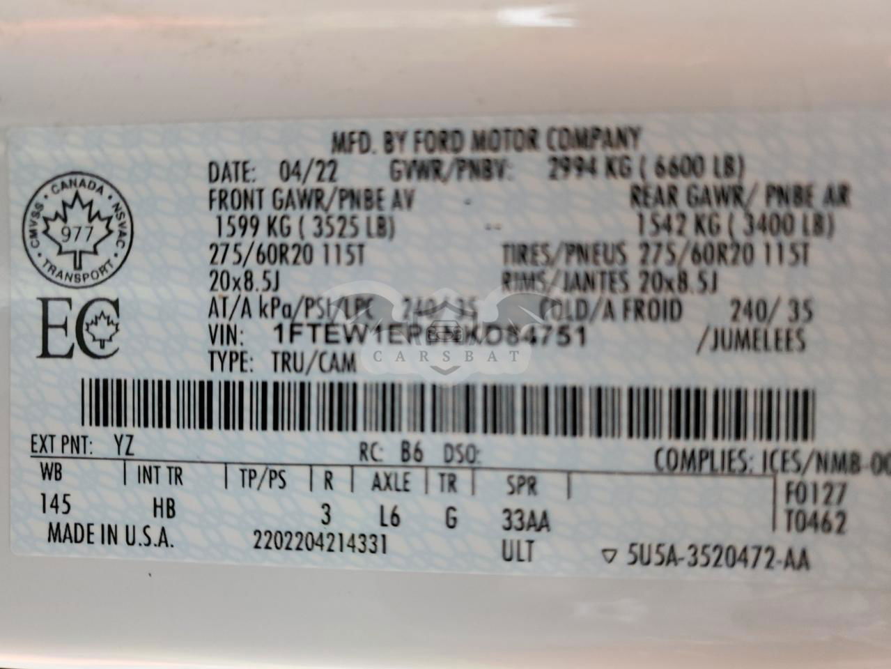 • VIN: 1FTEW1EP6NKD84751