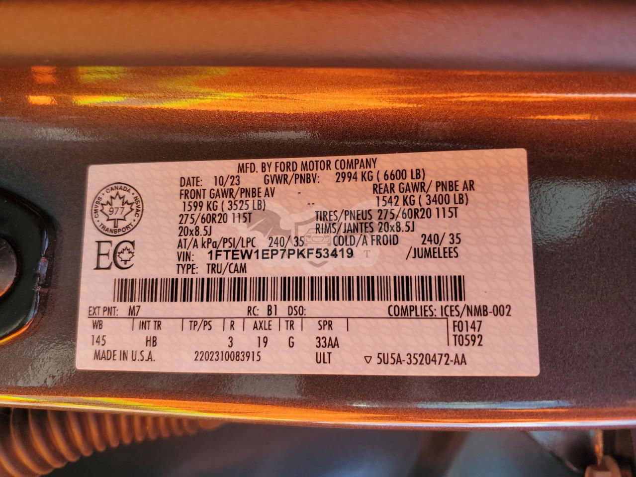 • VIN: 1FTEW1EP7PKF53419