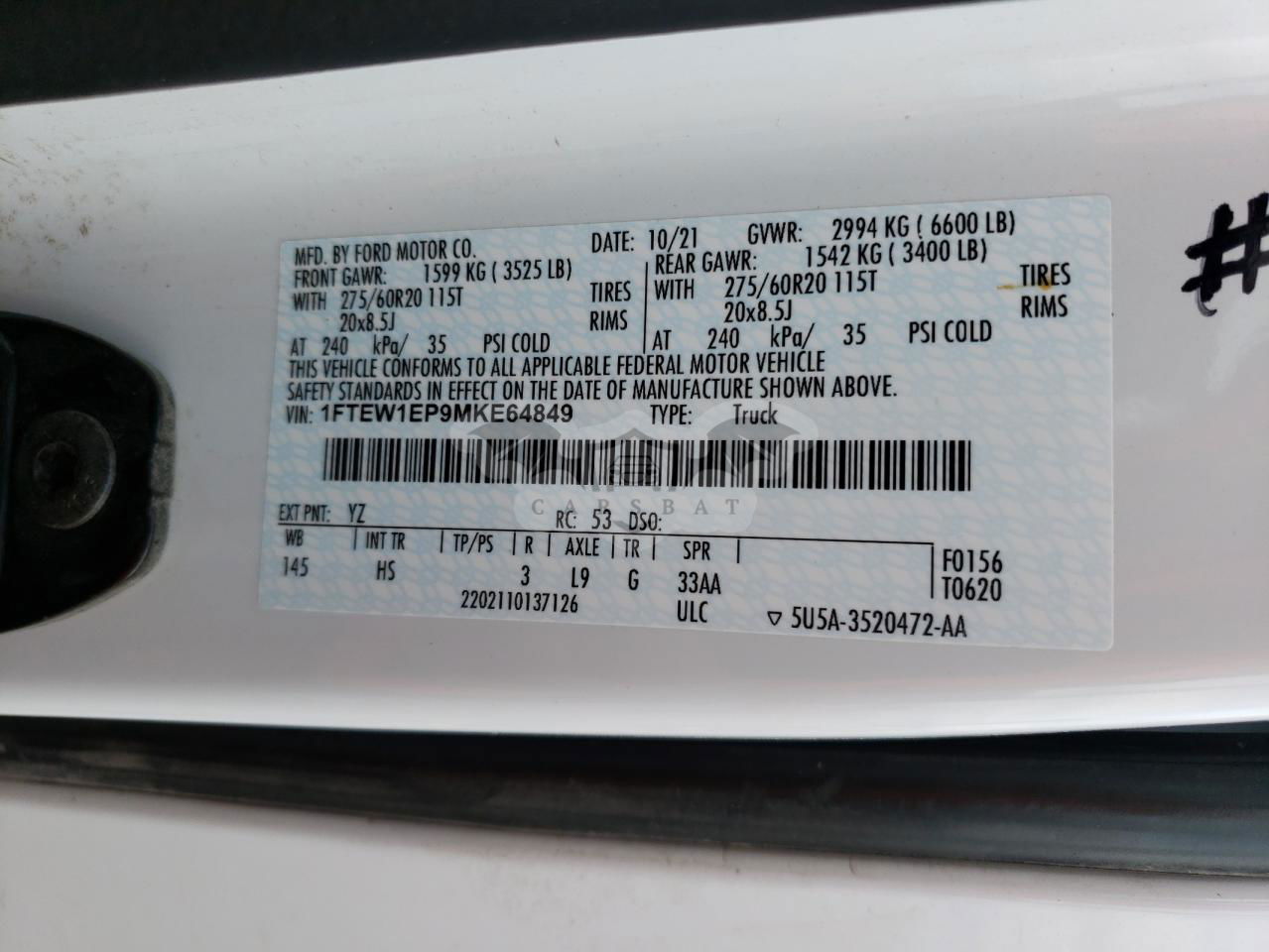 • VIN: 1FTEW1EP9MKE64849