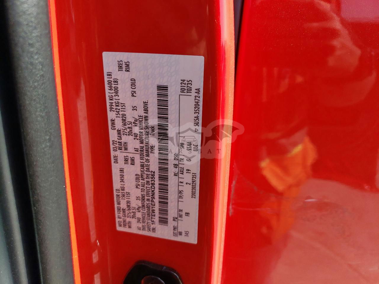 • VIN: 1FTEW1EP9NKD83562
