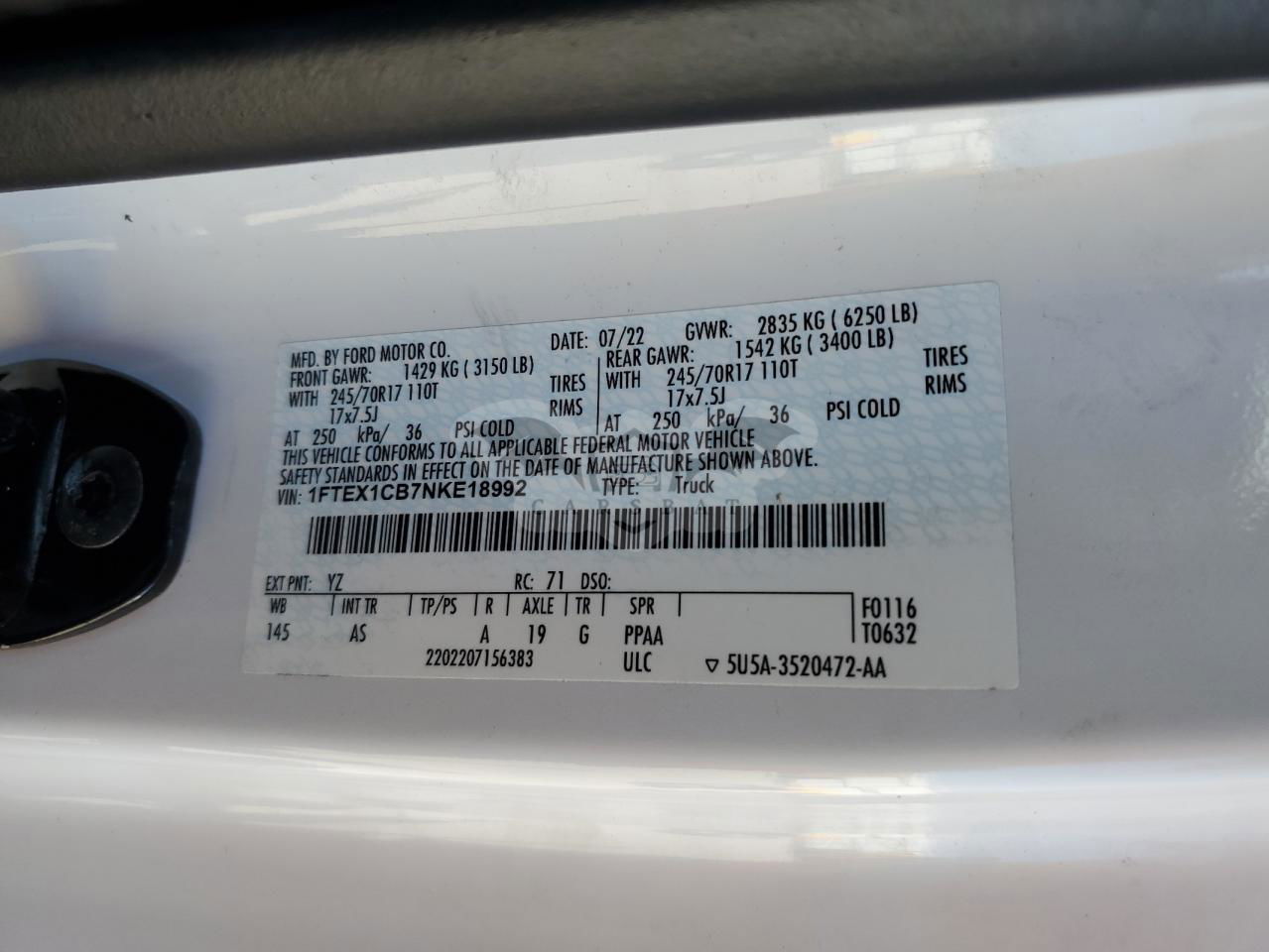 • VIN: 1FTEX1CB7NKE18992