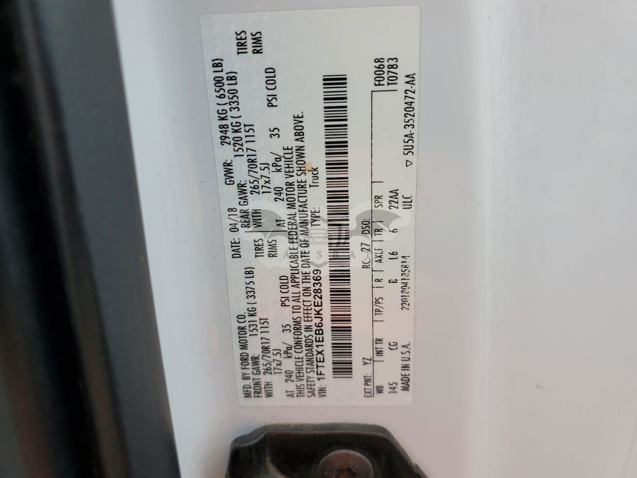 • VIN: 1FTEX1EB6JKE28369