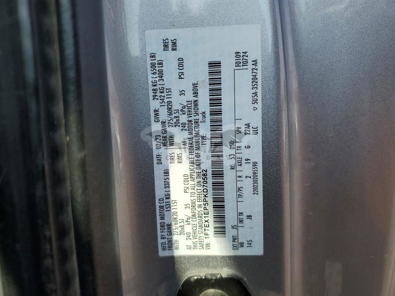 • VIN: 1FTEX1EP5PKD70582