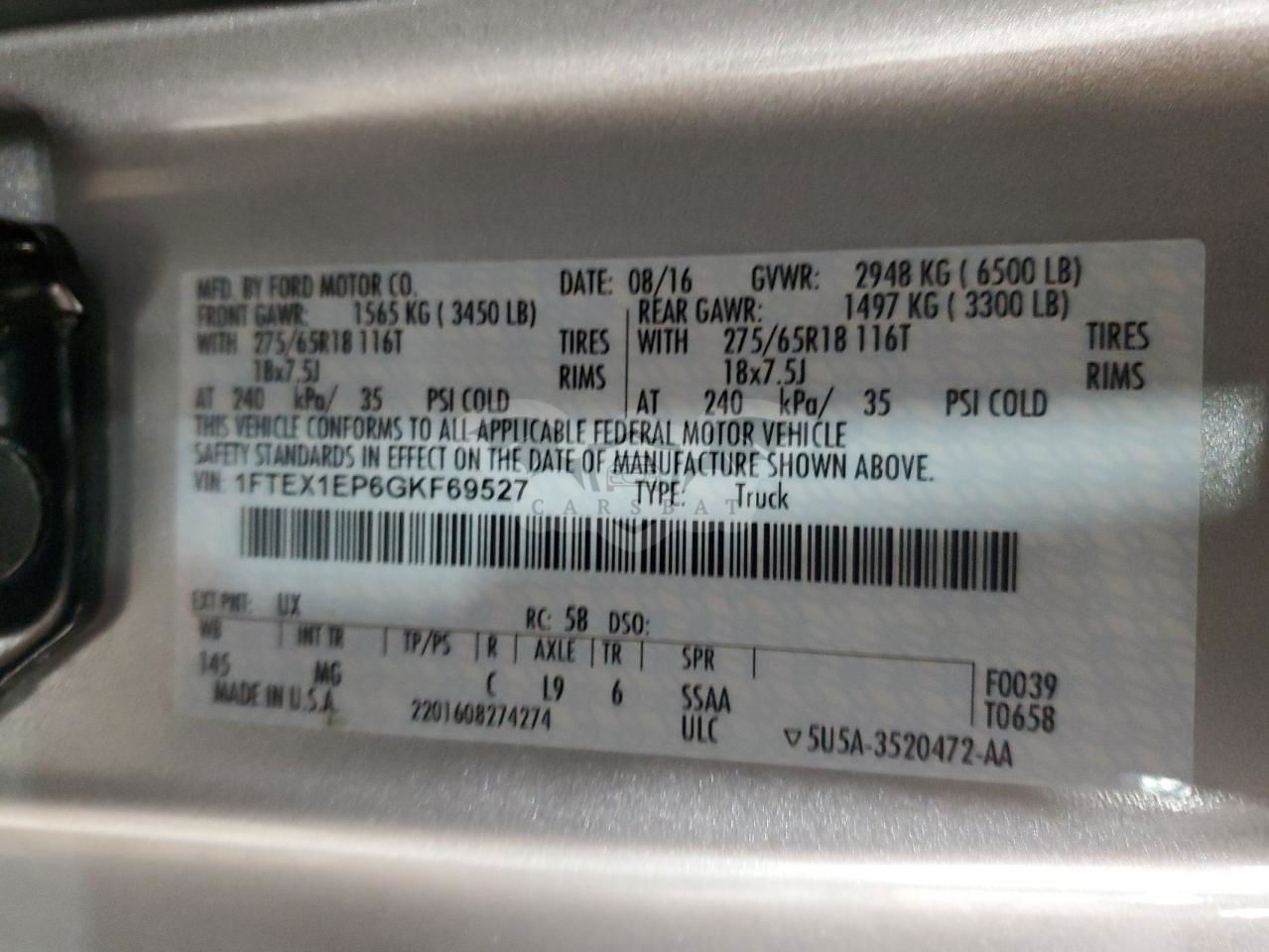 • VIN: 1FTEX1EP6GKF69527