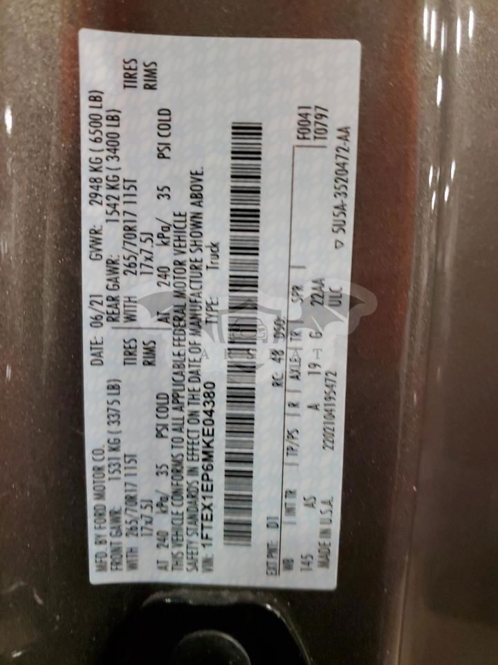 • VIN: 1FTEX1EP6MKE04380