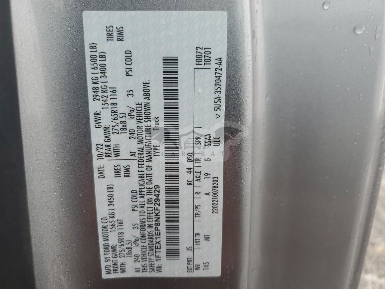 • VIN: 1FTEX1EP8NKF29429