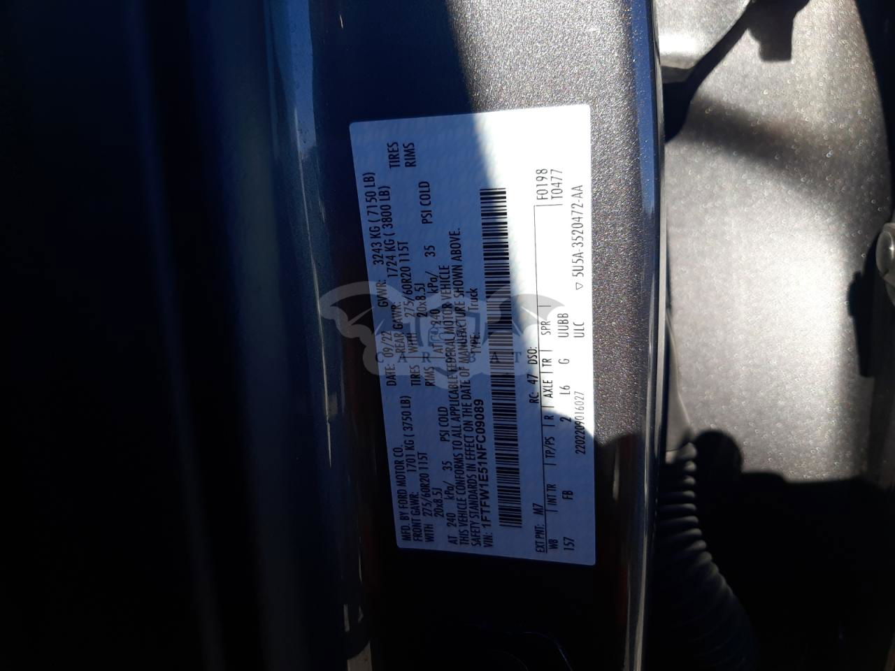 • VIN: 1FTFW1E51NFC09089