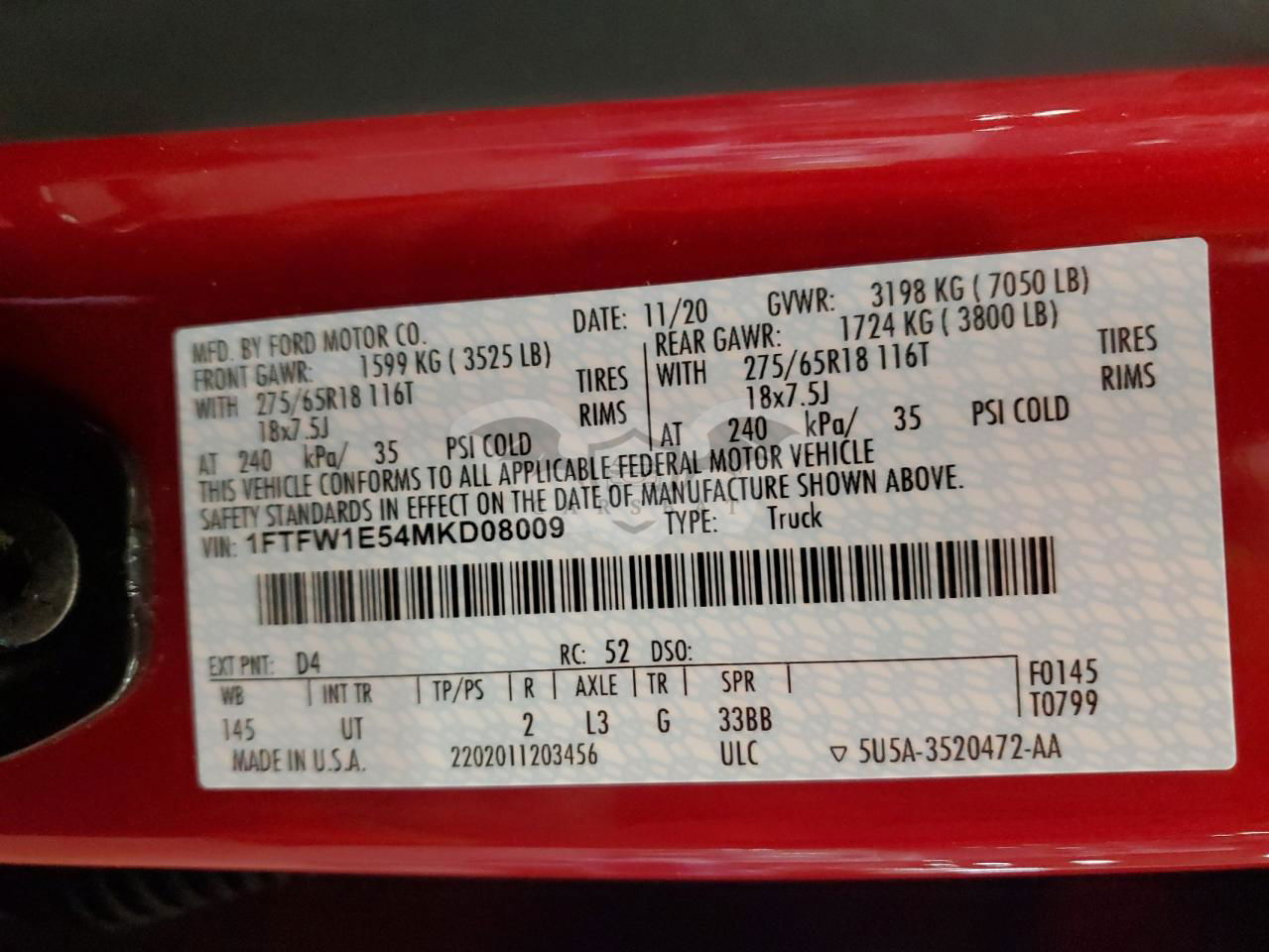 • VIN: 1FTFW1E54MKD08009