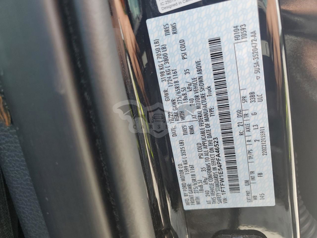 • VIN: 1FTFW1E54PFA46523