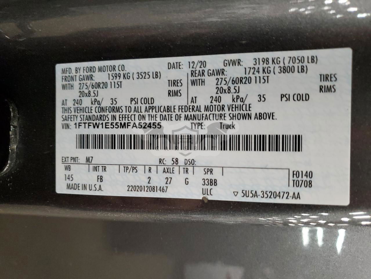 • VIN: 1FTFW1E55MFA52455
