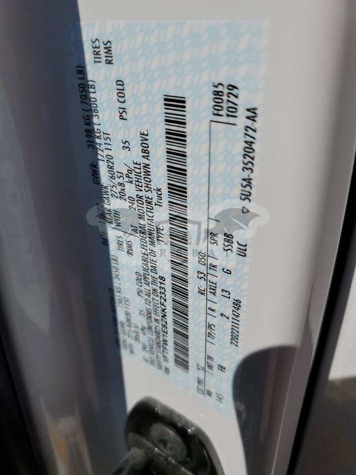 • VIN: 1FTFW1E82NKF23318