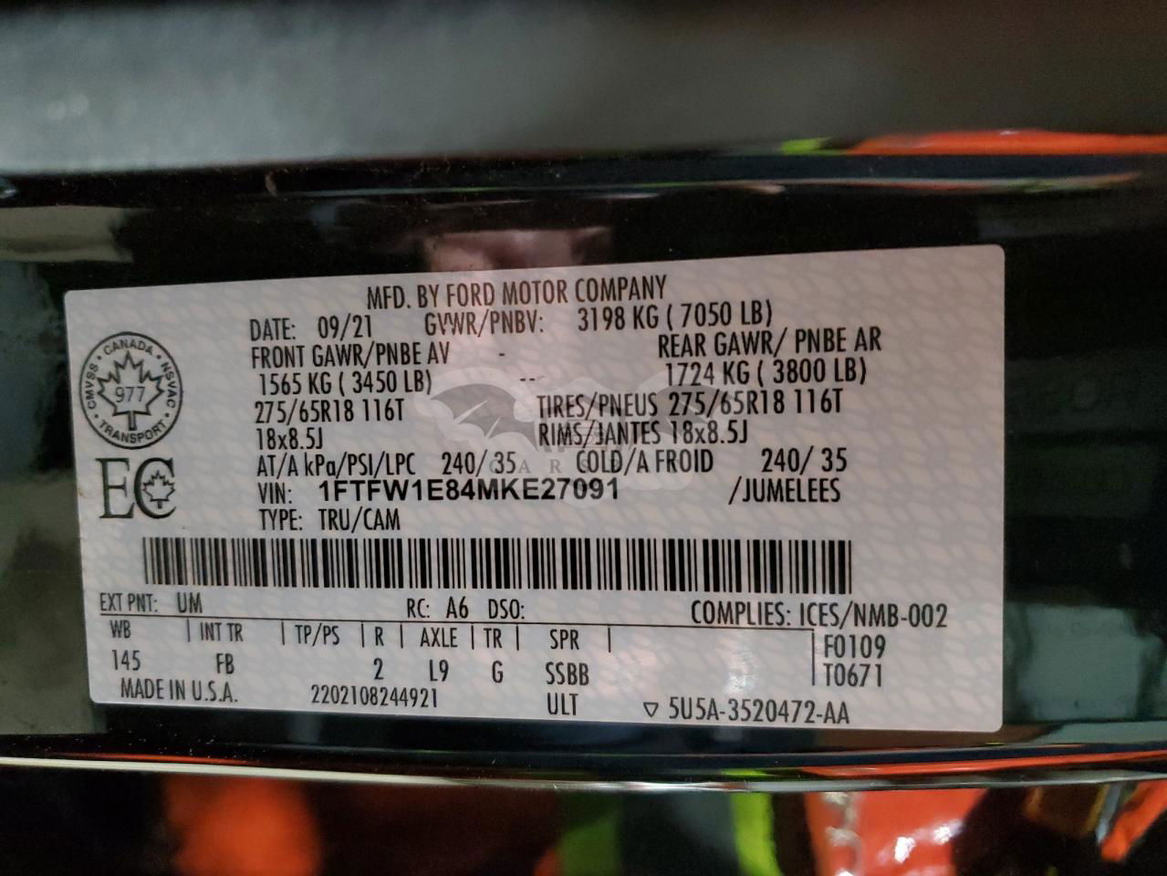 • VIN: 1FTFW1E84MKE27091