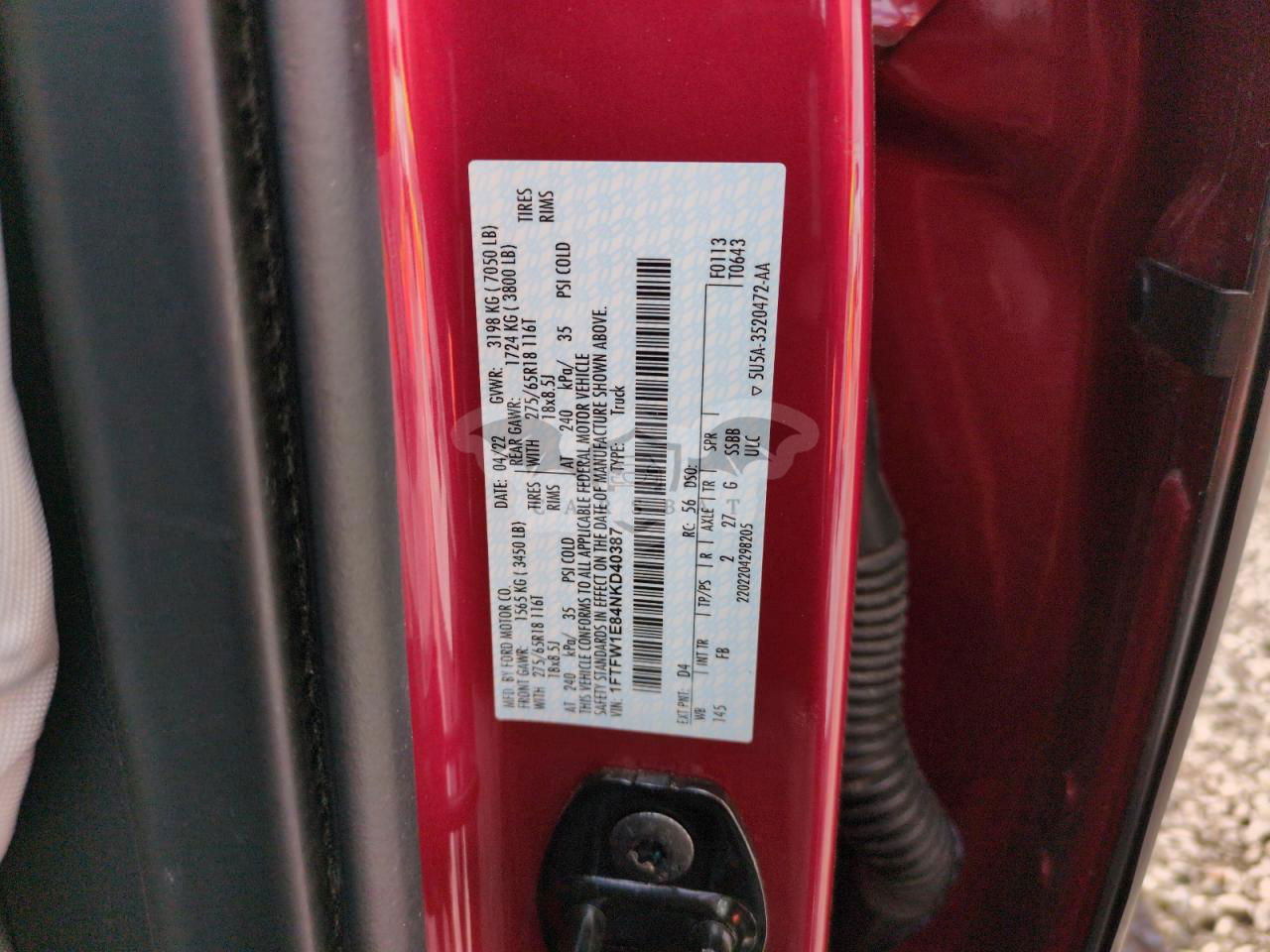 • VIN: 1FTFW1E84NKD40387