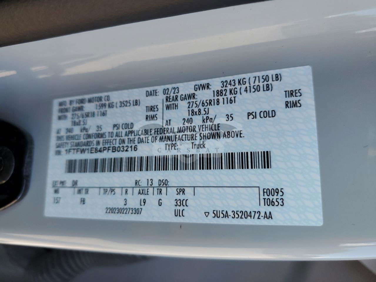 • VIN: 1FTFW1E84PFB03216