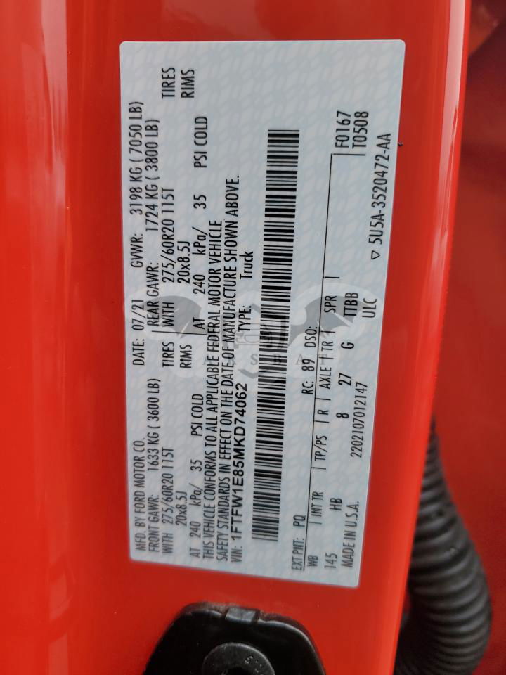 • VIN: 1FTFW1E85MKD74062