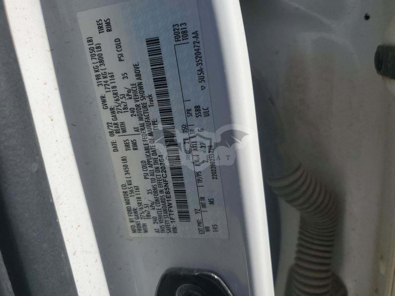 • VIN: 1FTFW1E85NFC20364