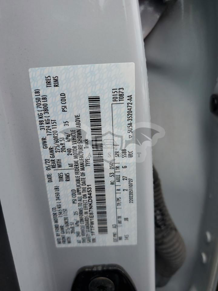 • VIN: 1FTFW1E87NKD84531