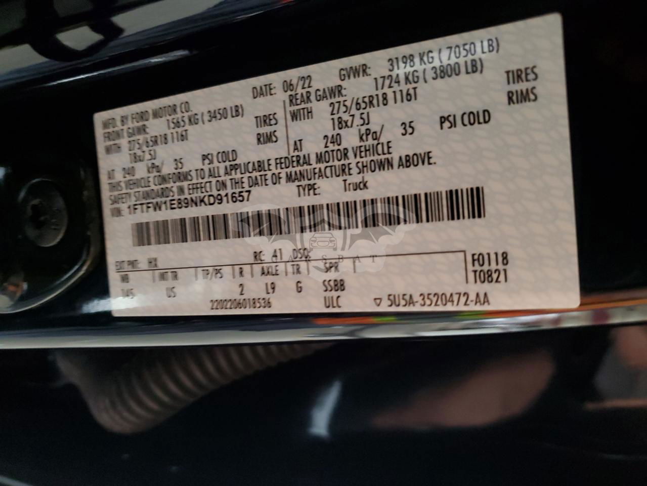 • VIN: 1FTFW1E89NKD91657